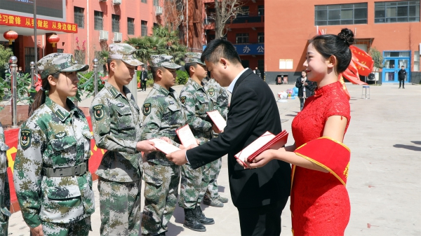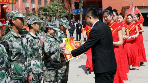 3月23日上午,我校2019級春季班新生軍訓匯報表演在啟智廣場隆重舉行,學校校長王景輝,中國人民解放軍中部戰(zhàn)區(qū)駐鄭州某部隊首長任強同志,副校長劉振、張海峰、蔡文龍、葛凡、劉新剛、孫東娟,相關職能部門負責同志及班主任出席并觀看了匯報演出。副校長劉振主持匯演。