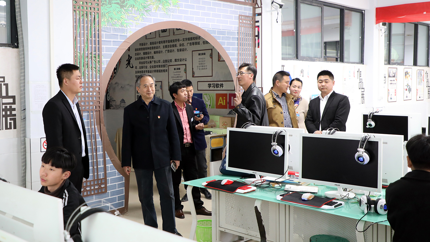 專家組觀看計算機專業(yè)學(xué)生實訓(xùn)操作