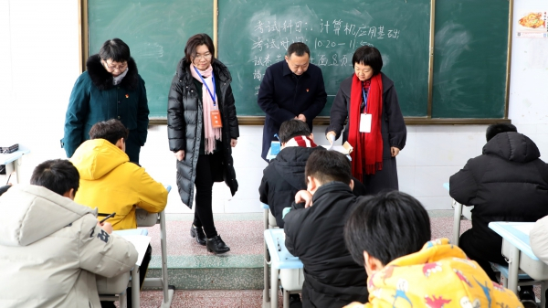 考試期間,鄭州市教育局中等職業(yè)學(xué)校公共基礎(chǔ)課水平測試巡考組一行四人在我校校長孫海蓮、副校長王景輝等人陪同下,先后對考場壞境、考試組織、考場紀(jì)律及監(jiān)考情況進(jìn)行了檢查巡視??紙黾o(jì)律嚴(yán)明、安全有序,考生們滿懷信心、筆翰如流。巡考組對我校此次中等職業(yè)學(xué)校學(xué)生公共基礎(chǔ)課水平測試工作給予了充分肯定,并要求我校按照鄭州市教育局的相關(guān)文件要求,以高標(biāo)準(zhǔn)、嚴(yán)要求做好考試的各項(xiàng)工作,讓學(xué)生考出好成績。