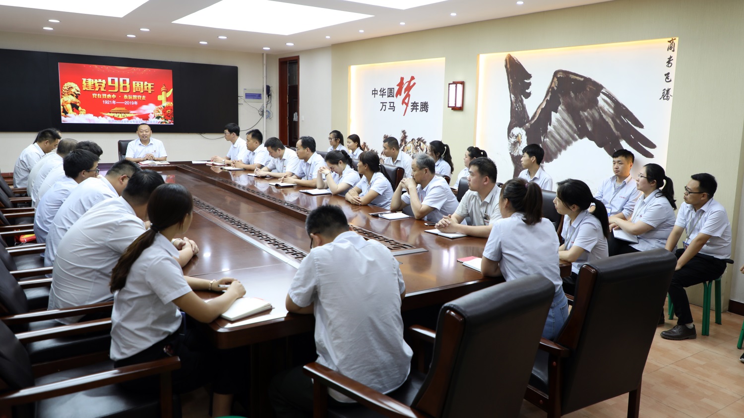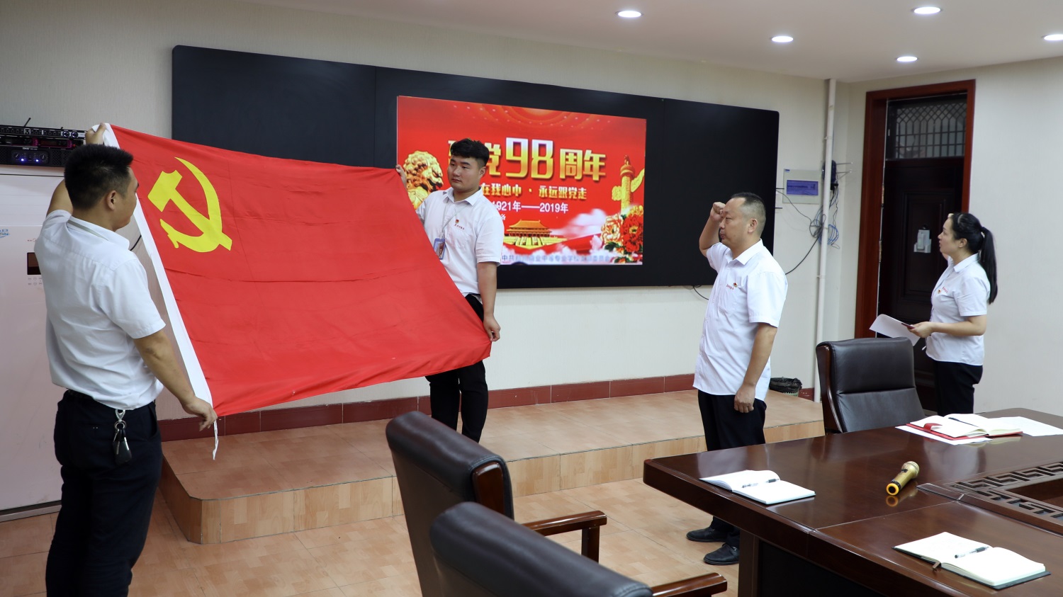隨后,全體黨員深情共唱《歌唱祖國》,禮獻建黨98周年。