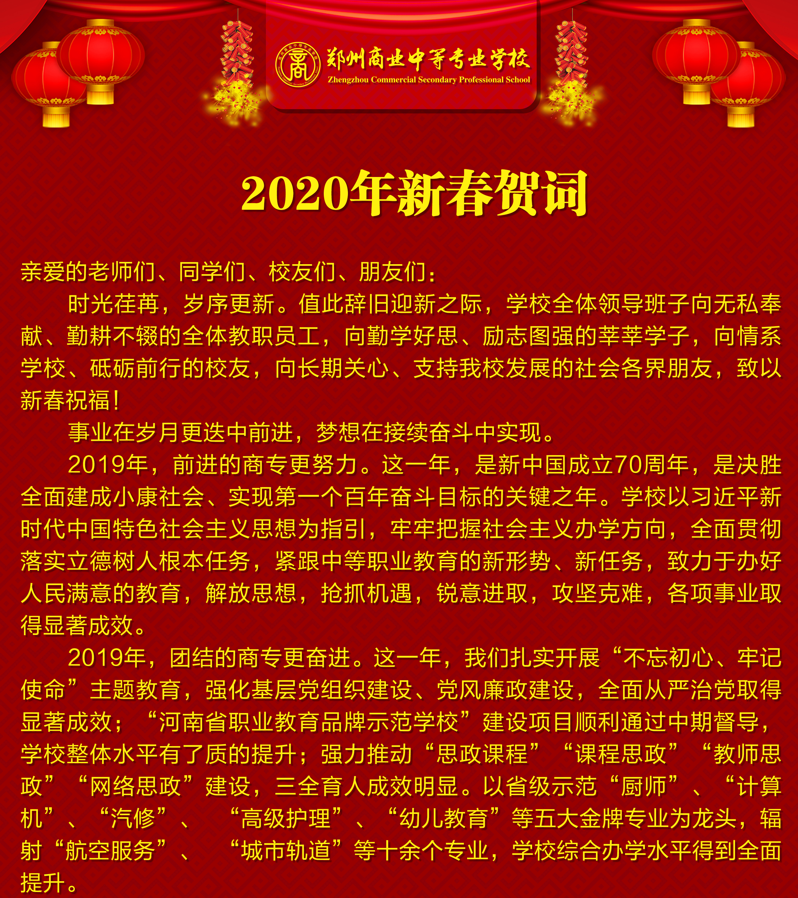 鄭州商業(yè)中等專業(yè)學(xué)校2020年新春賀詞